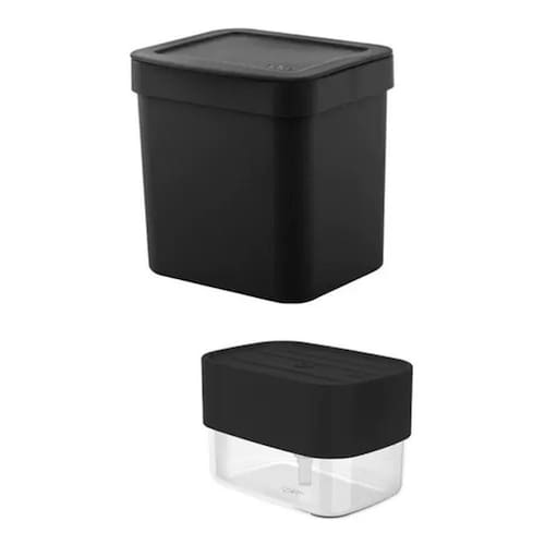 Porta Detergente Esponja Sabão Liquido Pia + Lixeira 2,5l Cor: Preto F6104