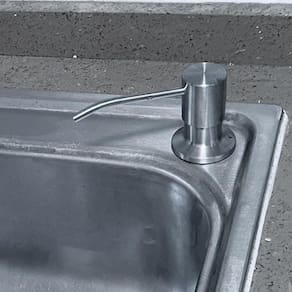 Porta detergente sabao dispenser de embutir inox 304 350ml Dispenser de detergente embutido 350 ml inox ========== Com qualidade e sofisticação, o dispenser de detergente inox premium da flvx hidro possui um design moderno e inovador, trazendo elegância para a sua cozinha. ========== Benefícios: Ideal para cozinhas e banheiros; Aço inox premium qualidade flvx hidro; Frasco de 350ml em pe; Pump removível para abastecimento superior. ========== Informações técnicas: Diâmetro de instalação: 2,4 a 3,5 cm; Espessura máxima de instalação: 4,5 cm; Materiais: aço inoxidável 304, elastômeros e plástico de engenharia; de 5 anos; Conteúdo da embalagem: 1 dispenser e 1 frasco 350 ml. Marca: Não Informado