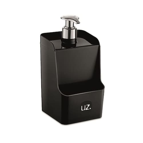 Porta Detergente Slim Dispenser Suporte para Esponja UZ Preto Porta Detergente Slim Sabão Líquido Dispenser Com Suporte Para Esponja Plástico UZ