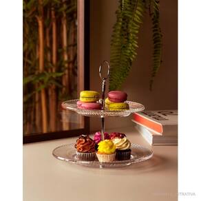 Possui 2 níveis de cristal cuidadosamente trabalhados, proporcionando uma exibição deslumbrante para seus deliciosos quitutes. É ideal para servir uma variedade de doces, bolos, biscoitos e muito mais.