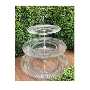 Conteúdo: 01 porta doces de 3 andares Medidas: Base menor: ø 18,5 cm x Base média: ø 26,5cm x Base maior: ø 31,5 cm Altura produto montado: 35,5 cm Modelo: Renaissance Material: Cristal Peso aprox. Do produto: 2.839kg