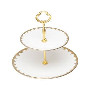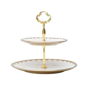 Porta Doces de Porcelana 2 Andares Paddy Branco e Dourado 19/27 x 24 cm Wolff