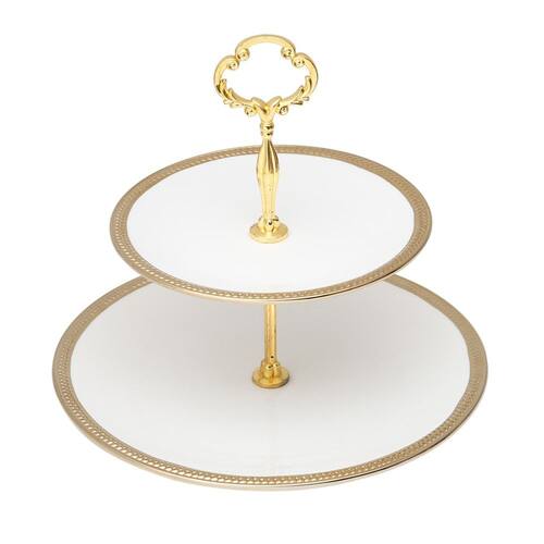 Porta Doces de Porcelana 2 Andares Paddy Branco e Dourado 19/27 x 24 cm Wolff