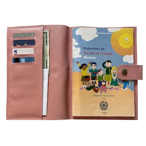 Porta Documentos e Carteira de Vacinas Bebê em Couro Sintético Salmão