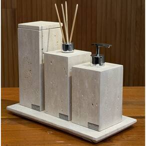- Durabilidade: Fabricado em Mármore Travertino Romano, que garante longa vida útil.