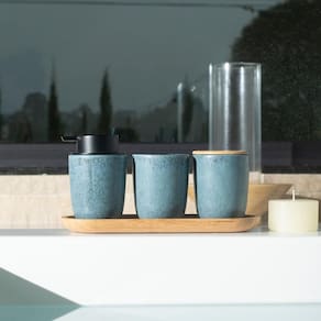O Porta Escova de Dente Osaka transforma a decoração do banheiro. Inspirado no estilo moderno, combina materiais e texturas que trazem a sensação de conforto e tranquilidade para os ambientes. É a solução para compor a bancada do banheiro e promover organização para um dia a dia com mais leveza.A combinação de texturas de pedras e mármores traz a sensação de tranquilidade para os ambientes e o bambu promove a sustentabilidade dentro da sua casa.Detalhes do produto Expressa personalidade na decoração do banheiro. Combina texturas de pedras e mármores para um ambiente mais tranquilo. Inclui detalhes em bambu, promovendo sustentabilidade. Une sofisticação, funcionalidade e respeito ao meio ambiente.INFORMAÇÕES TÉCNICASDimensões: LxAxP: 8x10x8cm.Material: Cerâmica + BambuCUIDADOSLave com esponja macia e sabão neutro, enxague com água abundante. Não utilize produtos abrasivos que possam riscar o produto (ex. palha de aço). Não deixe de molho (submerso) na água. Seque imediatamente após a lavagem. Guarde em local seco e arejado. Caso a parte de bambu apresente mofo, limpe-o com um pano umedecido em vinagre branco.CONTEÚDO DA EMBALAGEM1 Porta escova de dente OsakaSOBRE NÓSSomos apaixonados pelo que fazemos e utilizamos o design como meio de fazer você se sentir em casa onde estiver.Criamos produtos com carinho e cuidado para atender as suas necessidades diárias, levando bem-estar, aconchego e conforto para seu lar.Somos minimalistas e funcionais pois queremos que você tenha um estilo de vida mais leve e organizado, para atingir o máximo do seu potencial.Prazer, somos Ou.