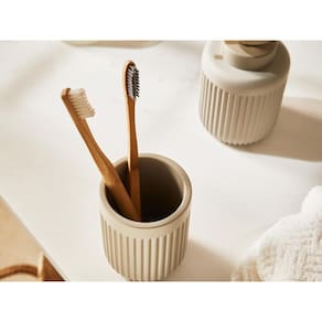 Porta escova decorativo recipiente multiuso em cimento Um ambiente tão importante para o momento do autocuidado também merece um carinho especial