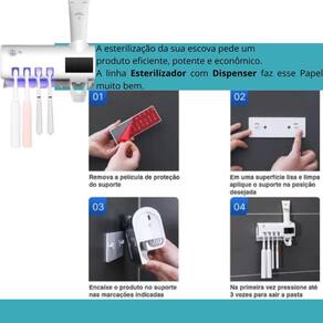 Conteúdo da embalagem: 01 suporte com esterilizador uv 01 adaptador para tubo de pasta de dente 01 kit de fixação 01 cabo usb