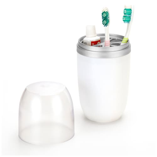 Porta Escovas e Pasta Arthi (1970) - Aço Escovado e Higiene com Tampa O Porta Escovas e Pasta Arthi combina sofisticação e higiene para a sua bancada. A estrutura robusta em Aço Escovado confere um visual premium e moderno, enquanto a tampa superior transparente protege as escovas e a ponta da pasta de dente contra poeira e respingos, garantindo um armazenamento mais higiênico. Características Físicas e Funcionais: Higiene Essencial: A tampa transparente permite visualizar o conteúdo e, ao mesmo tempo, protege as cerdas das escovas e a pasta de contaminações externas. Design Premium: Acabamento em Aço Escovado, que oferece durabilidade, resistência uma estética sofisticada. Organização Vertical: O formato cilíndrico e vertical (20,8 cm de altura) mantém escovas e pasta organizados em um único local, otimizando o espaço da bancada. Contraste de Materiais: Combina a base em metal escovado com detalhes em Branco, criando um visual clean. Marca: Arthi (Ref. 1970). Especificações Técnicas: Funcionalidade: Armazena escovas e pasta (com tampa). Dimensões: Diâmetro Ø8,8 X Altura 20,8 cm Material: Aço Escovado (Corpo) e Plástico (Tampa Transparente/Detalhes Brancos)