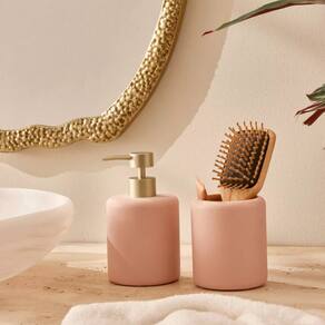 Com design sofisticado e elegante, o porta escovas em poliresina rose transforma a organização do seu banheiro, oferecendo beleza e praticidade.