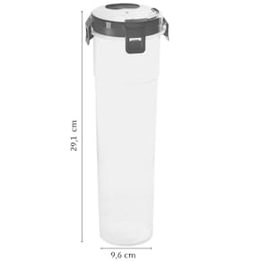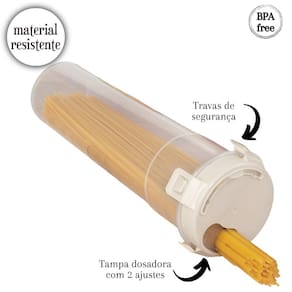 Este porta espaguete acomoda até 1Kg do produto e possui uma tampa com travas laterais que impedem que o conteúdo se espalhe em caso de incidentes. A super tampa do recipiente funciona inclusive como um dosador ajustável para até duas porções do macarrão. Conta com uma linda decoração com tecnologia intra imagem, proporcionando maior durabilidade ao desenho. O produto é fabricado em material plástico resistente e atóxico, livre de BPA. Material: polipropileno Capacidade: 1L Comprimento: 9,6 cm / Largura: 9,6 cm / Altura: 29,1 cm
