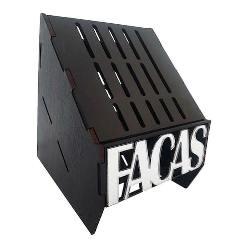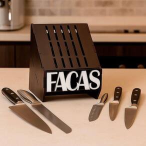 Porta Facas Faqueiro Organizador Cozinha Gourmet BBQ Silver Porta Facas - Faqueiro com Letreiro em Acrílico Prata para Cozinha e Área BBQ Eleve a organização da sua cozinha ou do seu cantinho do churrasco com este elegante Porta Facas Faqueiro, perfeito para ambientes gourmet e espaços BBQ. Com capacidade para acomodar até 14 facas de variados tamanhos, incluindo cutelos e facas padrão, oferece uma solução prática que preserva suas lâminas e mantém tudo sempre acessível. Produzido em MDF resistente com acabamento clean, este suporte alia robustez e estilo contemporâneo. O letreiro em acrílico prata com a inscrição Facas traz um toque sofisticado e discreto, realçando a decoração do seu espaço, seja na cozinha residencial, restaurante, cafeteria ou área gourmet externa. Ideal para quem busca funcionalidade e um visual refinado, pode ser facilmente posicionado próximo à bancada, mesa ou churrasqueira, garantindo praticidade e segurança no manuseio das facas. Além de ser altamente funcional, é uma excelente escolha para presentear chefs, entusiastas da gastronomia e amantes do BBQ que valorizam uma cozinha organizada e com estilo. Renove sua rotina culinária e seu espaço gourmet com um porta facas que une eficiência, design moderno e versatilidade. DIMENSÕES APROXIMADAS: - Porta Facas - Faqueiro: Altura: 22 cm x Largura: 14 cm x Profundidade: 24 cm CARACTERÍSTICAS DO PRODUTO: - Porta Facas artesanal em MDF com letreiro Prateado, suporta até 14 facas de vários tamanhos. Design funcional e resistente, ideal para cozinha e estabelecimentos. CUIDADOS: - Limpe com pano levemente umedecido para melhor conservação. DO PRODUTO: - Seu produto é embalado com cuidado para garantir a entrega em perfeito estado. Em caso de imprevistos, oferecemos e troca para sua total satisfação. Imagens meramente ilustrativas. Produto artesanal sujeito a variações de cor e tonalidade. Marca: Não Informado Ean: 7892484215222