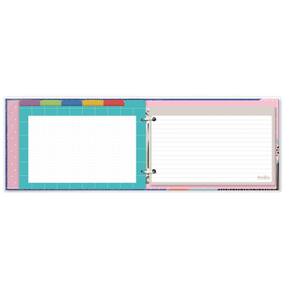 Porta-fichas, capa dura, formato 25,5 cm x 18 cm, com ferragem duas argolas, contém: 48 fichas pautadas, formato 5 x 8 (20,4 cm x 12,8 cm), em papel offset 180 g/m2 (encorpado) e 6 divisórias coloridas, formato 20,5 cm x 14,5 cm, em papel offset 240 g/m2. Você pode comprar outros modelos de fichas separadamente e incrementar o seu porta-fichas. Acompanha capa protetora.