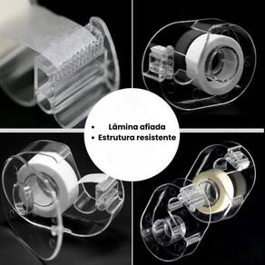 Características Principais: - Compacto e leve; - Feito de acrílico; - Cortador embutido; - Estrutura resistente; - Manuseio confortável; - Não danifica ou embola a fita; - Transparente, permite que a quantidade de fita restante seja visível; - Ideal para quem usa fita adesiva frequentemente; - Fácil de transportar e usar.