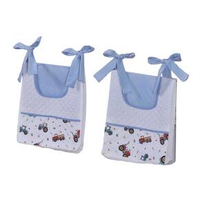 Porta Fralda Organizador Quarto de Bebê Menino Menina 2 Peças Com Laço Cor: Trator azul claro O porta fraldas é ideal pra ter sempre a mão os produtos mais no dia a dia com seu bebê. Cada porta fralda tem 2 bolsos frontais, onde podem ser colocados produtos pequenos, e um bolso maior pra colocar as fraldas, roupas, toalhas ou itens maiores. Praticidade e decoração em um só produto. Sugestão de uso: Pendurado em varão ou no berço Contém na embalagem: 2 porta fraldas MEDIDAS: 38cm alt x 32cm larg x 10cm prof COMPOSIÇÃO: Matelado de microfibra 100% poliéster Tecido estampado e liso percal 180 fios 100% algodão - Foto ilustrativa, tonalidade da cor pode variar um pouco no produto real Produtos fabricados em Ibitinga-SP, a Capital Nacional do Bordado e do Enxoval. Marca: Não Informado
