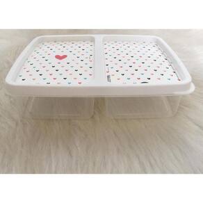 Este pote retangular possui 2 divisórias para separação de alimentos. É produzido em plástico atóxico, livre de bpa. Pode ser levado ao freezer e ao microondas. Possui decoração com tecnologia intra imagem. Dimensões do produto: Comprimento: 24 cm x Largura: 17 cm x Altura: 5 cm.