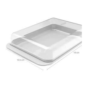 Ideal para acondicionar frios. Recipiente empilhável para uma melhor organização no refrigerador. Prático e fácil de limpar. Serve também como manteigueira.