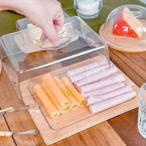 Leve praticidade e elegância para a sua cozinha com este porta frios funcional e moderno. A base é feita em bambu natural, um material ecológico, durável e de fácil limpeza, que dá um toque sofisticado à mesa ou à geladeira. A tampa em plástico transparente permite visualizar o conteúdo e ajuda a conservar melhor os alimentos, mantendo-os protegidos e organizados. Ideal para armazenar queijos, presuntos, salames e outros frios com higiene e estilo.