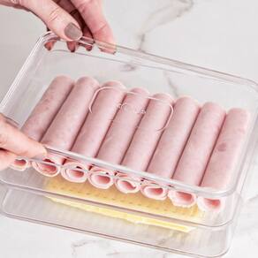 Duas bandejas empilháveis com tampa única: organização compacta e eficiente Ideal para conservar frios, queijos, legumes fatiados, frutas ou sobras Transparente: facilita a visualização dos alimentos sem precisar abrir Tampa com fechamento firme, que ajuda a manter os alimentos frescos por mais tempo Empilhável: aproveita melhor o espaço da geladeira