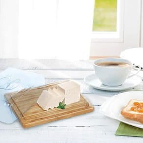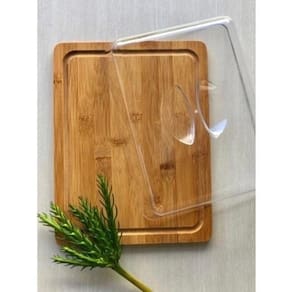 O porta frios possui prato retangular desenvolvido em bambu natural, resistente a proliferação de bactérias e fungos, o bambu é autossustentável e com alta resistência.