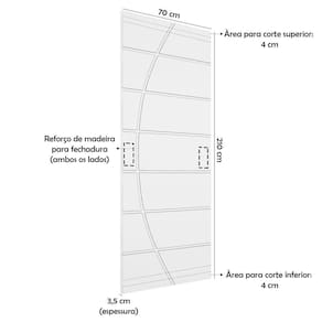 Medidas 210x70 cm: dimensões padrão que facilitam a instalação em vãos internos.