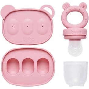 Kit Porta Frutinhas e Forminhas Buba - Introdução Alimentar SeguraTorne a introdução alimentar do bebê prática, segura e divertida com o Kit Porta Frutinhas e Forminhas da Buba. Perfeito para apresentar frutas, legumes ou até um sorvetinho caseiro, o kit oferece porções ideais e segurança em cada refeição. A forminha de silicone é ideal para congelar leite materno ou outros alimentos líquidos, garantindo porções perfeitas para o consumo do bebê. Já o porta-frutinhas possui sugador em silicone, alça texturizada para massagear a gengiva e aliviar desconfortos da dentição, além de um design anatômico, facilitando a pegada pelos pequenos. Benefícios do Kit Porta Frutinhas e Forminhas Buba: