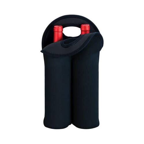 Porta garrafa em neoprene para 2 garrafas com alça- preto
