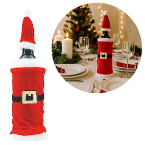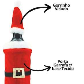 01 Porta Garrafa Natalino Veludo Vermelho Estilo Roupa Papai Noel