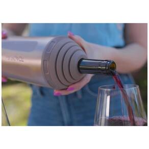 TOP AJUSTÁVEL se encaixa na maioria dos vinhos padrão, champanhe, garrafas de água com gás, etc. DESIGN FLEXI LOCK segura a garrafa com segurança enquanto despeja. CONSTRUÇÃO DE AÇO INOXIDÁVEL Feito com aço inoxidável de alta qualidade para uma aderência sem condensação. ISOLAMENTO A VÁCUO DE PAREDE DUPLA mantém o líquido desejado resfriado por horas