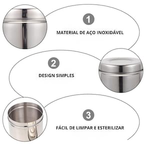 Características Principais: - 12cm; - Material de aço inoxidável de alta durabilidade; - Ideal para armazenar gaze, algodão, cotonetes e pequenos instrumentos; - Fácil de limpar e esterilizar, evitando contaminação; - Tampa com encaixe preciso para proteção contra poeira e contaminações; - Indicado para uso em clínicas de estética, podologia, odontologia e manicure; - Leve e portátil, fácil de transportar entre diferentes áreas de trabalho; - Formato cilíndrico que otimiza o espaço de armazenamento e facilita o acesso ao conteúdo; - Fechamento simples e rápido.