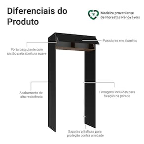 O acabamento preto com amadeirado Rustic traz personalidade e elegância ao ambiente, destacando o design da linha Agata.A porta basculante, equipada com pistão a gás, proporciona mais praticidade e segurança, permanecendo suspensa quando aberta.