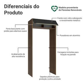 A porta basculante, equipada com pistão a gás, mantém-se suspensa quando aberta, oferecendo mais segurança e praticidade no uso diário. A combinação do tom amadeirado Rustic e Preto, traz um toque moderno.