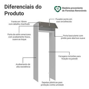 A porta basculante possui sistema de pistão a gás, que a mantém suspensa quando aberta, garantindo ainda mais segurança no dia a dia. O acabamento de alta resistência em branco e cinza, possui textura suave ao toque, criando um visual moderno.
