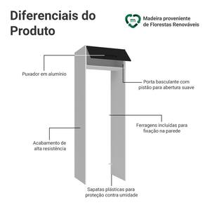 A porta basculante conta com sistema de pistão a gás, que a mantém suspensa quando aberta, garantindo mais praticidade e segurança no uso diário.