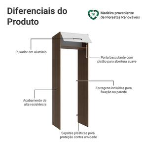 A porta basculante conta com sistema de pistão a gás, que a mantém suspensa quando aberta, garantindo mais praticidade e segurança no uso diário.