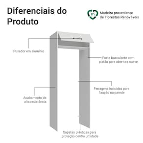 O acabamento Branco traz leveza para a cozinha, criando um visual moderno e fácil de combinar com diferentes estilos de decoração. A porta basculante conta com sistema de pistão a gás, que a mantém suspensa quando aberta, garantindo mais praticidade e segurança no uso diário.