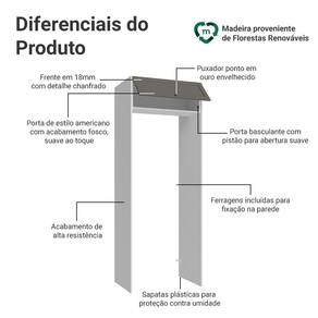 O acabamento do móvel conta com textura suave ao toque, que valoriza o visual sofisticado da linha. O acabamento branco com cinza cria uma composição discreta e sofisticada, fácil de combinar com diferentes propostas de decoração.A porta basculante conta com sistema de pistão a gás, que a mantém suspensa quando aberta, garantindo mais praticidade e segurança no uso diário.
