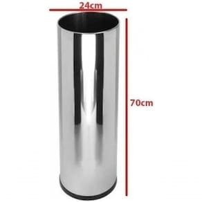Organize guarda-chuvas em ambientes de grande circulação com o porta guarda-chuva Higipack Porta Guarda-chuva - Inox 24x70 Comercio Condomínio, ideal para entradas de comércios e condomínios. Com capacidade de 22 litros, ajuda a reter a água dos guarda-chuvas molhados, mantendo o piso mais seco e seguro. Sua bandeja coletora de água em aço inoxidável 430 contribui para um uso prático no dia a dia e facilita o descarte do líquido acumulado. O design em inox combina com diferentes estilos de recepção e halls de entrada. A marca Higipack oferece um produto funcional para quem busca organização em áreas de acesso intenso.