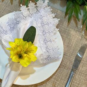 Com sua cor vibrante e sua delicadeza, o porta guardanapo astromélia amarela é perfeito para criar uma atmosfera acolhedora e sofisticada, combinando com diversos estilos de decoração, seja para uma mesa formal ou mais descontraída.