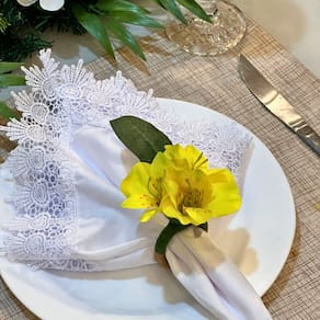 Porta Guardanapo Astromélia Amarela Decoração Mesa 04un