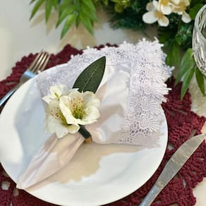 O tamanho foi cuidadosamente projetado para se ajustar perfeitamente ao seu guardanapo, garantindo não só beleza, mas também funcionalidade. Ele é versátil e se adapta a diferentes arranjos de mesa, proporcionando uma decoração elegante e charmosa.