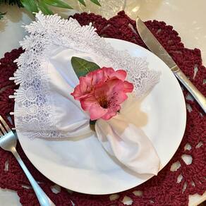 O tamanho foi cuidadosamente projetado para se ajustar perfeitamente ao seu guardanapo, garantindo não só beleza, mas também funcionalidade. Ele é versátil e se adapta a diferentes arranjos de mesa, proporcionando uma decoração elegante e charmosa.