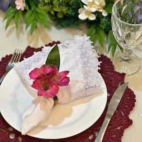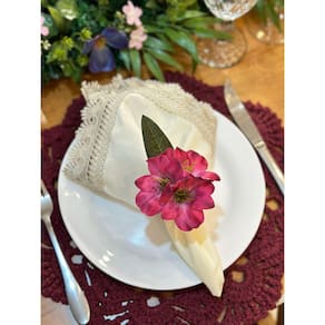 O tamanho foi cuidadosamente projetado para se ajustar perfeitamente ao seu guardanapo, garantindo não só beleza, mas também funcionalidade. Ele é versátil e se adapta a diferentes arranjos de mesa, proporcionando uma decoração elegante e charmosa.