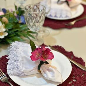 Transforme sua mesa com a beleza única e suave da astromélia. O porta guardanapo traz um toque especial, encantando seus convidados e deixando o ambiente mais sofisticado e acolhedor.