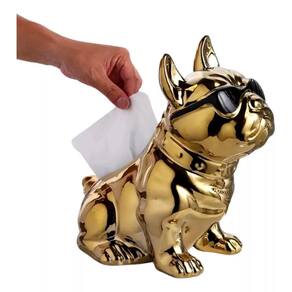 Porta guardanapo cerâmica bulldog romeu dourado 24x17x24 Adicione um toque de charme e sofisticação à sua mesa com o encantador porta-guardanapo de cerâmica em formato de bulldog. Este acessório irresistível é uma fusão perfeita entre estilo e funcionalidade, capturando a essência lúdica e elegante dos adoráveis bulldogs.