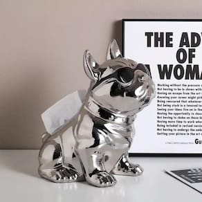 Porta guardanapo cerâmica bulldog romeu prata 24x17x24 Adicione um toque de charme e sofisticação à sua mesa com o encantador porta-guardanapo de cerâmica em formato de bulldog. Este acessório irresistível é uma fusão perfeita entre estilo e funcionalidade, capturando a essência lúdica e elegante dos adoráveis bulldogs.
