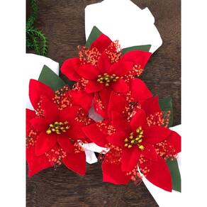 Porta Guardanapo de Natal e Ano Novo, artesanal com Flor Permanente e Argola de Madeira Cerejeira.