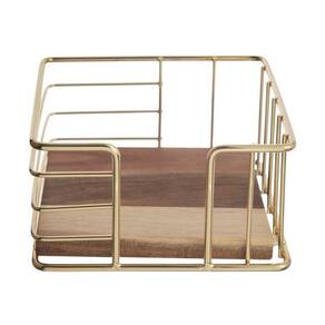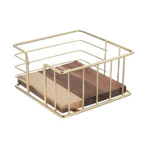 O Porta-guardanapos Acácia Gold é todo produzido 100% em madeira acácia e mantém todos os guardanapos expostos sob a mesa. É um acessório útil e prático que pode contribuir com a decoração da sua mesa. A estrutura é toda em metal e a base em madeira acácila.