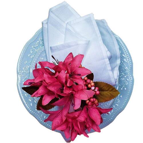 Porta Guardanapo Lírios Da Maison Charlô Pink - 4 Unidades este Porta Guardanapo Lírios da Maison Charlô na cor rosa é feito de tecido no tom PINK com a medida aprox. 10cm de comprimento, 7 de largura e 5cm de altura, o anel em madeira na cor tabaco com 4,5cm de diâmetro e 1cm de espessura. Um verdadeiro charme à sua mesa. Quer surpreender seus convidados está aí uma dica que irá alegrar sua mesa. Basta ele e tudo ficará elegante e bonito. Embalagem 4 unidades Obs: Não acompanha guardanapo/prato/sousplat. Ean: 7898657117942
