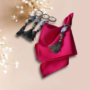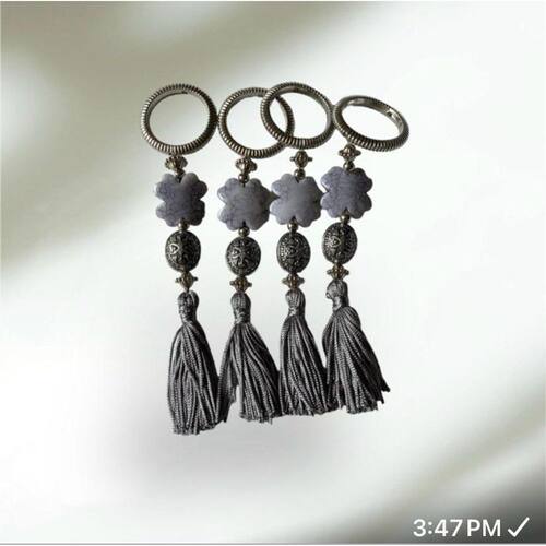- Detalhes dos produtos: - Porta guardanapos argola em resina trabalhada e entremeios prateados e Tassel Marca: Atelier Vera Botelho